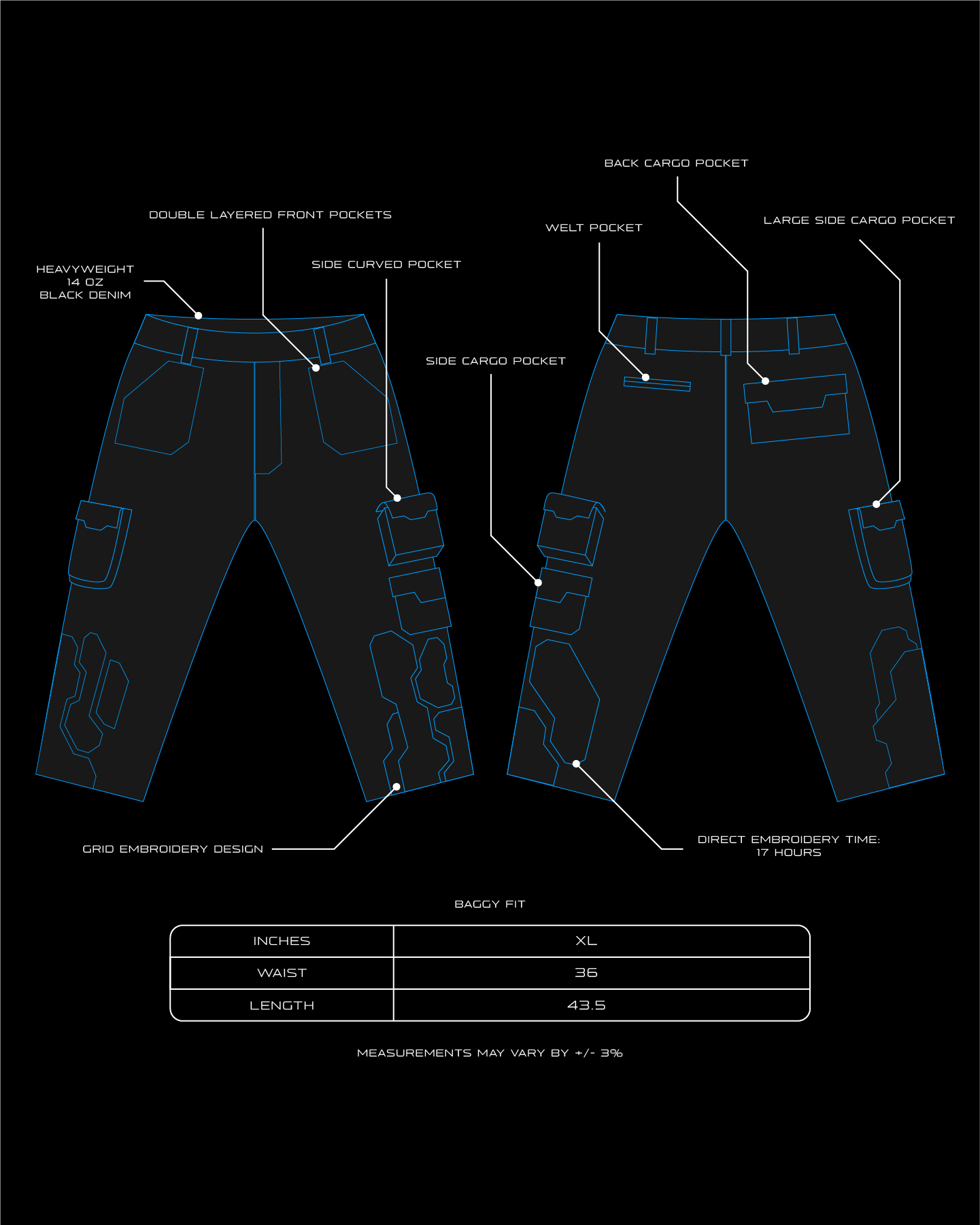 • Direct embroidery time: 17 hours